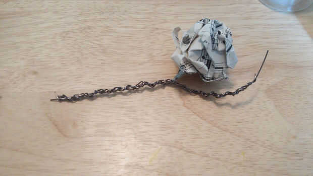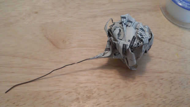 2. comenzar a envolver cada alambre alrededor del tallo de la rosa. -Envuelva la mitad de la longitud del alambre alrededor del tallo y dejar la mitad del alambre desenroscado.