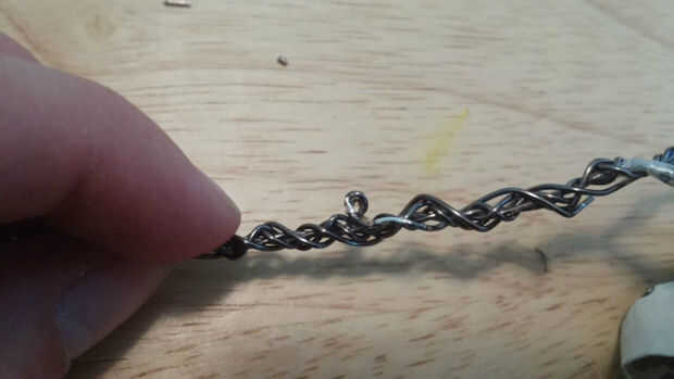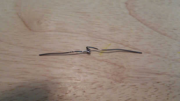 2. en el centro el alambre doble tres lazos pequeños. -Los lazos deben alinearse al lado del otro y deben ser lo suficientemente pequeños como para un perno quepa.