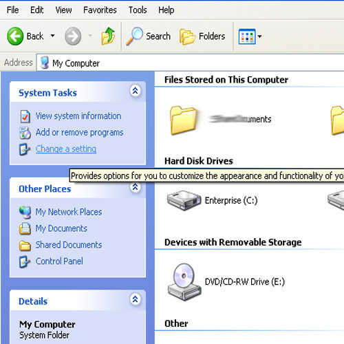 de todos modos, ahora vaya al botón "modificar un ajuste" la columna de la izquierda. Esto te llevará a tu panel de control...
