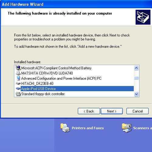 ahora Desplácese por la lista hasta encontrar, apple "Ipod USB Device"