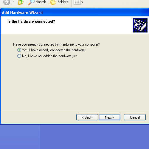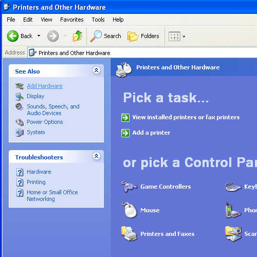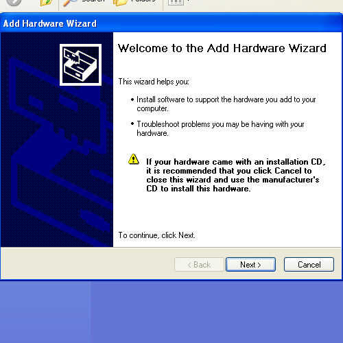 ahora en "impresoras y otro hardware", haga clic en la columna de la izquierda otra vez clic en "agregar hardware". entonces un testamento de asistente pop-up, haga clic en siguiente. buscará un nuevo hardware conectado al ordenador, pero no encontrará uno.