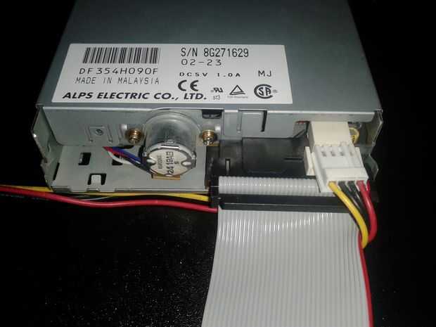 Tome un cable solo prototipos y soldadura/conectar a los pines 11 y 12 en la unidad de disquete. Esto permite que la unidad para su uso. Aplique energía de 5 voltios a la unidad conectando las clavijas de dos alimentación a 5v los pines GND del tablero uno de LinkIt. El led en el frontal de la unidad deberá encenderse si las patillas enable se conectaron correctamente.