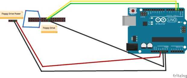 El cableado es muy simple. Conector de tierra de Arduino va al pin 3 de la energía de la unidad de entrada, pin de 5V de Arduino el al pin 4 del conector de alimentación de la unidad, pin 11 del conector de datos de la unidad al pin 12 del conector de datos de la unidad, el pin 2 de salida digital de Arduino al pin 20 del conector de datos de la unidad, el pin 3 de salida digital de Arduino al pin 18 del conector de datos de la unidad de , y el pin 19 del conector de datos de la unidad va al conector de tierra de Arduino.