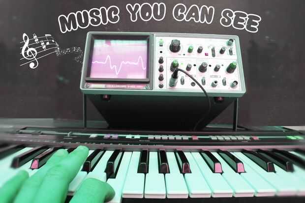 Música ya no es sólo para los oídos. Lo que han hecho los oídos de millones de años, osciloscopios han hecho para un centenar. Agarra un teclado tienda de segunda mano, juguete infantil electrónica o cualquier otro electrónico soundmaker y con un hack rápido, convertir las canciones en algo que pueden disfrutar de los globos oculares.