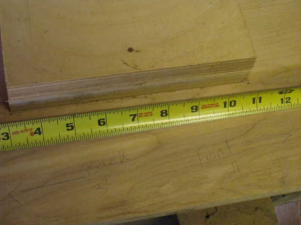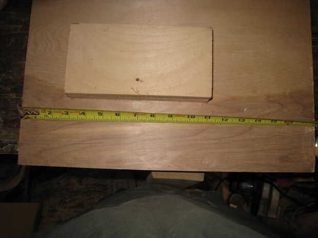Usted tendrá que marcar dos líneas en el contrachapado (18 x 12). De los dos extremos más alejados (18" aparte) usted necesitará marcar 3" de un extremo y 11" de la otra. Esto es donde se fijan los bloques de 8 "x 4". Estos bloques serán que el centro de ayudas para el soporte de su muleta.
