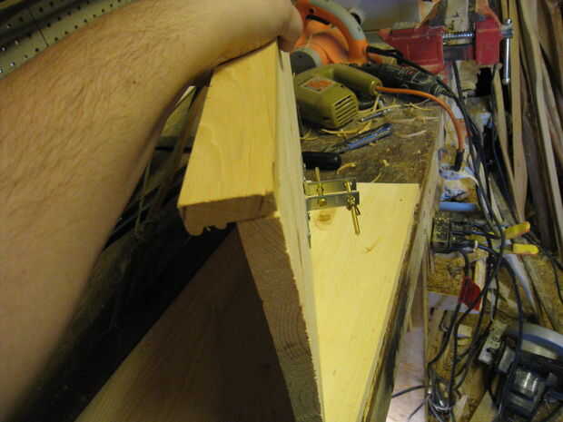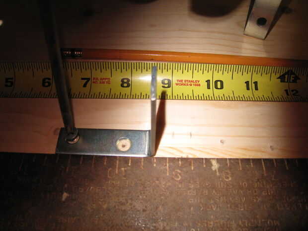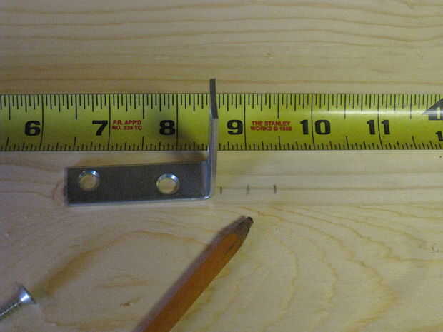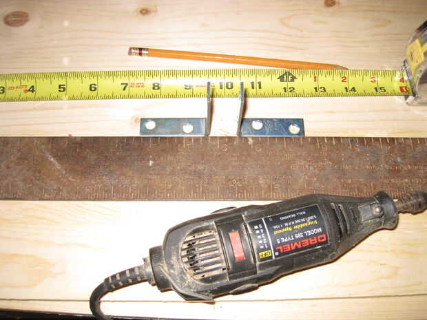 Fijar las abrazaderas de las esquinas de cada una de esas dos marcas y marque los orificios con un lápiz. Quitar llaves y perfore orificios piloto con herramienta Craftsman Dremel. Vuelva a colocar los tirantes y atornille los tornillos que vinieron con ellos con el destornillador de cabeza philips.