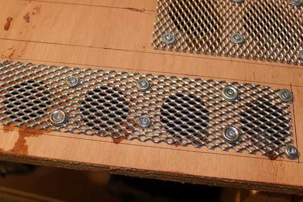Solía las arandelas de copa y regular con tornillos autoroscantes que corta Agárrate firmemente la malla. Tal vez lo fue pero no hay manera que esta malla será empujada apagado sin una lucha.