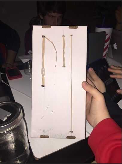 Crear un telar musical con un Makey Makey.Paso 1: Crear un prototipo Hemos querido crear un telar que podría crear música como el transbordador tocó cada hilo de urdimbre. Queríamos más de 5 hilos de trabajo... pero primero teníamos que probar el hil