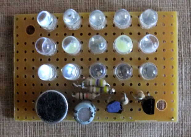 C-en 1uF al condensador de 5uF + al lado del micrófono de Electret