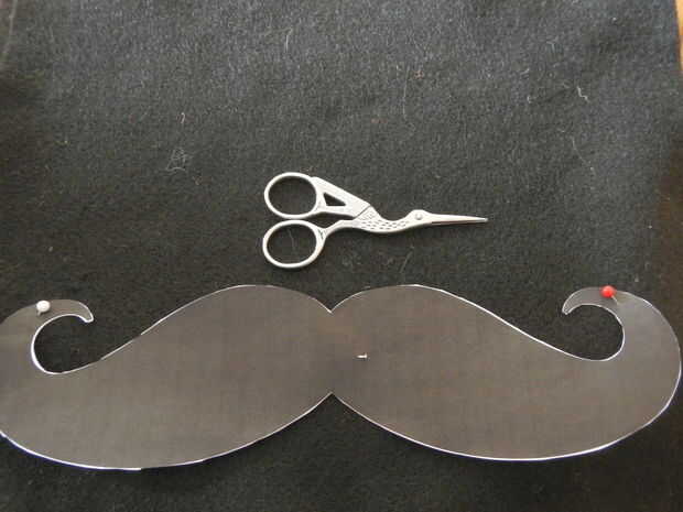 Desea conseguir algo presionado la plantilla de bigotes para el fieltro. Utilice una cinta de grapadora o agujas para sujetar hacia abajo.