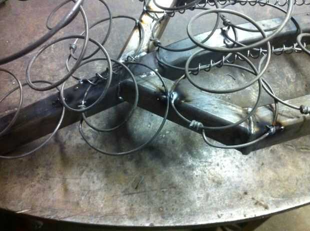 Una vez que todos los resortes para mi satisfacción, los soldados sobre. Esto fue un molesto trabajo soldadura Soldador MIG simplemente no baja potencia suficiente para soldar alambre fácilmente y yo seguí rompiendo los resortes, pero finalmente lo logré. En retrospectiva debo han utilizado la antorcha para estas soldaduras, pero la MIG es mucho más rápido! He probado los resortes con mi mano, encontró un par de lugares donde la parte inferior de resorte presión golpee contra el marco y los que no se que hacer ruidos de roscado interno cuando se sentó soldados a.
