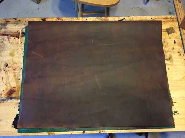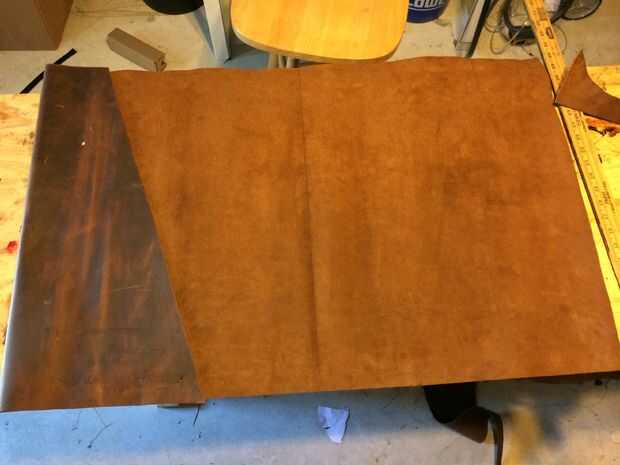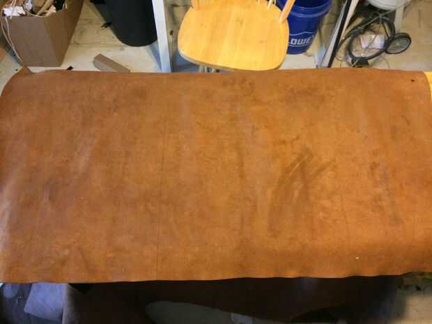 Para este proyecto usé un hide de "Mustang". Ahora no enloquecer pensando que me volví galleta de mar en un rollo de la herramienta. Cada curtiembre tiene maneras de vaca ordinaria bronceado ocultar para que se vea similar a las pieles de otros animales. También es una piel "Kodiak" hecha para parecer como el oso pardo y un búfalo que esconden... bueno... que uno es realmente del búfalo. Esa piel de "Mustang" es una piel ropa solía hacer cosas como chaquetas de cuero, chaparreras y carteras desgastados la talla de Indiana Jones, él mismo. Corté un panel 24 "x 48" que sería utilizado para el cuerpo principal, paneles de interiores y solapa, utilizando la llave más alta como mi límite superior de altura había puesto en el tercio medio del panel en el extremo derecho y dobla la parte inferior tercera hasta dentro de 4 pulgadas desde la parte superior de la cabeza de la llave. En este punto me puso la funda de plástico de la llave de mi plantilla encima de la piel y rascó una línea completamente la diagonal hacia la izquierda. Esto creó una manga que sea equidistante de la parte superior de la llave más pequeño al más grande. Hice lo mismo para el grupo más pequeño de llaves en la esquina superior izquierda del rodillo. Luego cortar la solapa inferior del cuerpo principal para crear dos paneles interiores distintos. Trajo la aleta hacia abajo para asegurarse de que alinearon correctamente con la parte inferior y puesto que siempre mida dos veces y corte una vez, lo hizo.