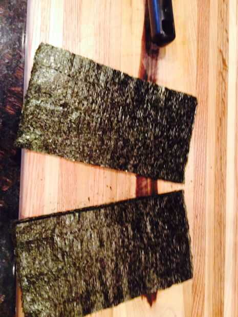 Después se hacen con el Spam a un lado y empezar en tus huevos. Asegúrese de que vencer a los huevos antes de verter en la cacerola. Una vez que ha cocinado los huevos usan su prensa Musubi para cortar los huevos en el tamaño correcto. Yo no te patronizar explicando cómo cocinar arroz (las instrucciones están en la parte posterior de la bolsa). Te diré sin embargo que una vez que el arroz se hace verter algunos vinagre de vino de arroz y luego fluf que buena. Después de que haya terminado con la comida necesita rasgar sus hojas de Nori por la mitad.