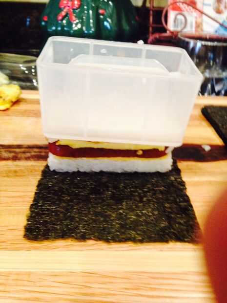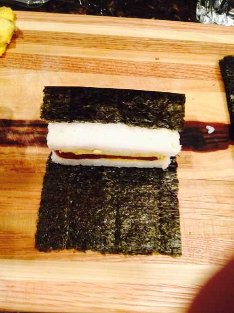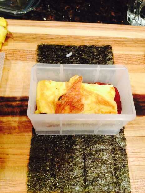 Paso tres: ponga en su rebanada de huevo y Spam.