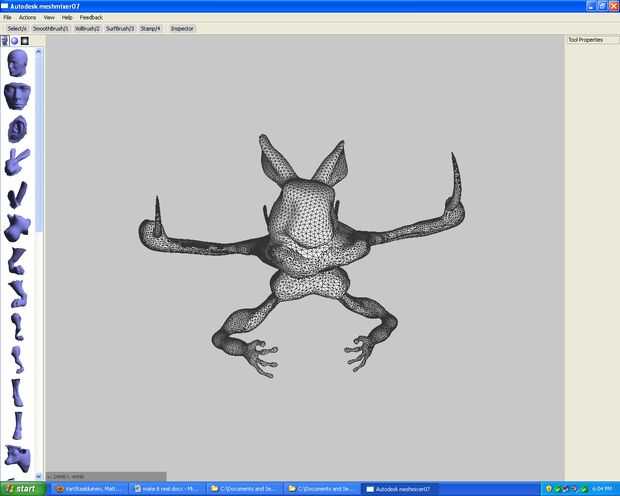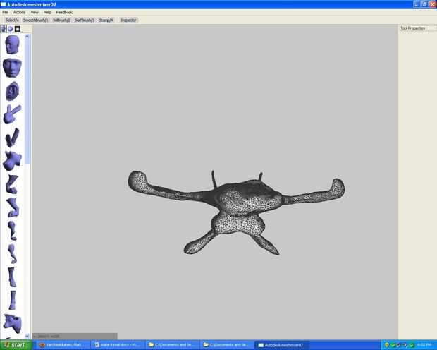 Para el objeto real, usando Meshmixer para modificar la parte es a menudo una necesidad porque la malla de captura 123D casi nunca saldrá para imprimir, especialmente si la parte no se cuelga del techo. Piezas que se colocan en el suelo irá inevitablemente como un shell (característica muy delgada que está hueca). Para solucionarlo, Meshmixer tiene una función de reparación llamada "inspector". Esto se cierra los orificios en la malla que no se puede ver como llenar el material en un objeto sólido. Utilizar esta herramienta después de cada compilación antes de exportar como un archivo .stl.