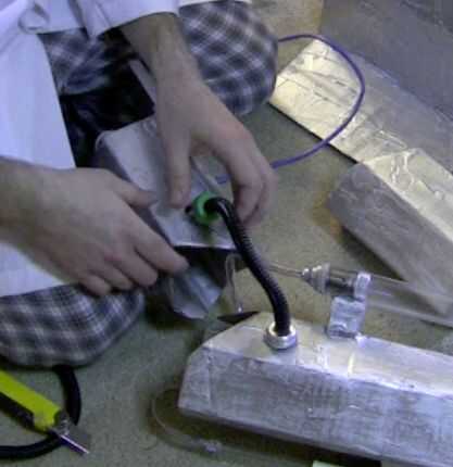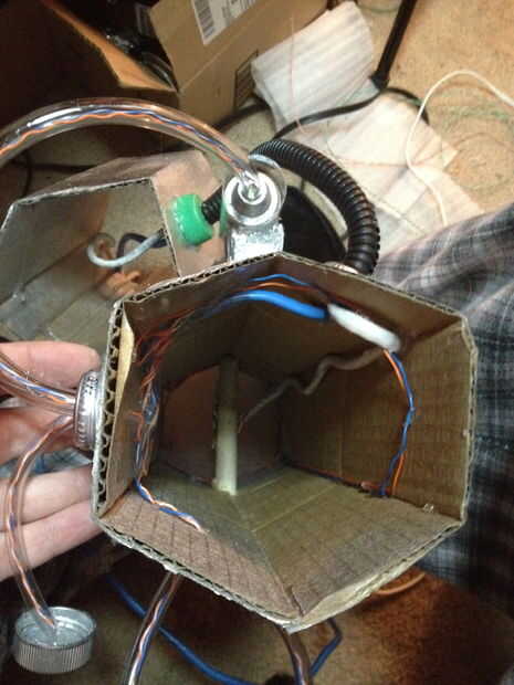 Me envió estos cables a través de la parte superior de la manga y utiliza manga plástica (disponible en RadioShack) para cubrir los cables. Los cables van intencionalmente fuera de la armadura para hacer este look como parte de Cyborg real. La misma combinación de dos tazas de botella se utiliza para cubrir los lugares donde el cable entra la armadura.