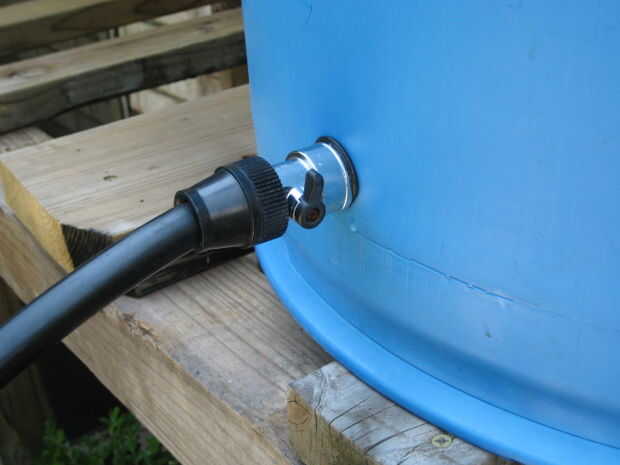 El vino de barril plástico de 55 galones de freecycle.org. Era libre, no lejos de casa y una vez salsa de tomate. Yo no incluso riesgo usando un barril que él tenía cualquier tipo de sustancia tóxica en un punto pero si es solo un poco sucio como mina era, enjuague con agua, frote con jabón, enjuague y repita hasta que satisfecho. Pongo mi válvula de encendido/apagado (que por suerte estuvo con el cañón) aproximadamente 2 pulgadas por encima del suelo del cañón para sedimentos no obstruyen la válvula. Encontrar el tamaño de broca que se necesita para su válvula en particular por perforar un trozo de madera o algo y el montaje de la válvula. Una vez que encuentre la broca del tamaño exacto, perforar lentamente y constantemente, luego use arandelas de goma o silicona como sea necesario para sellar la válvula en el orificio (había utilizado unas arandelas).