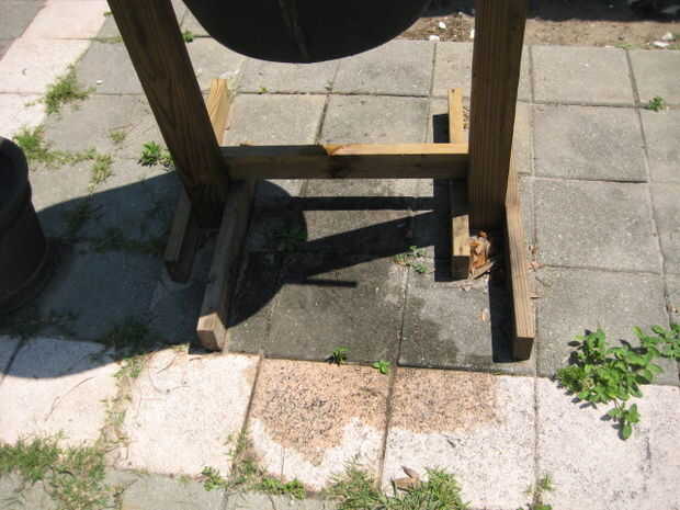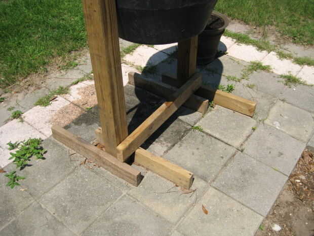 La 2 x 4 en la parte inferior se tambaleó como eso porque tenía longitudes torpes por parte. El 4 x 4 son 4 pies. La varilla que he mencionado es interior de la tubería de pvc y es que la longitud porque no tenía ganas de cortar la varilla que es sólo el tamaño que Home Depot tenía. El pvc es cortar a la longitud de la varilla y apenas se deslizó sobre ellos.
