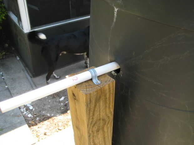 Corte los agujeros en el cañón un poco por encima de la mitad de pesados de la parte inferior y la parte superior tiende a afrontar. Los agujeros son un poco más grandes que 1/2 pulgadas para aire en el cañón entre abrir agregar material.