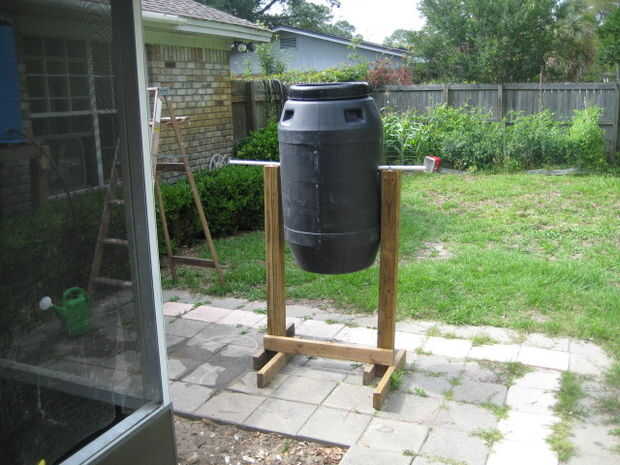 Agregue todos los vegetales incluyendo material de la cocina, algunas hojas, papel picado, o lo que no es demasiado pesado o grueso como los bastones que tendrán un tiempo para romper. El calor en el cilindro es lo que hace la descomposición relativamente rápido y produce compost bonito que parezca el suelo y estar lleno de alimentos en aproximadamente 2 meses. Me he llenado de mina, que tomó aproximadamente un mes, y ahora acabo de girar y abrir para echar un vistazo de vez en cuando. Estoy en proceso de hacer un cubo de gusano por lo que voy a tener algo que ver con los restos de mi comida en el tiempo.