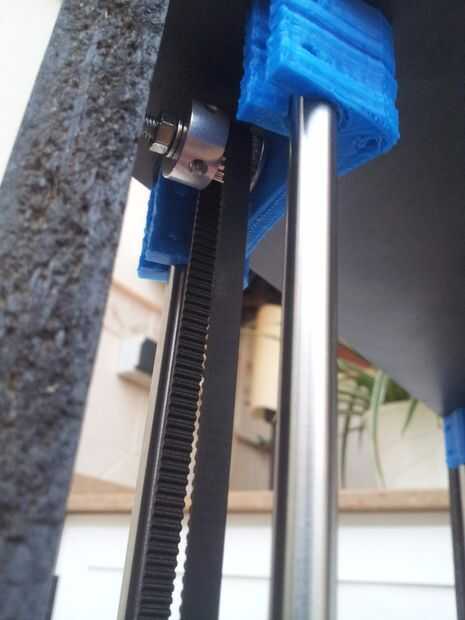 Conecte y apriete la correa entre cada eje motor y la polea superior.