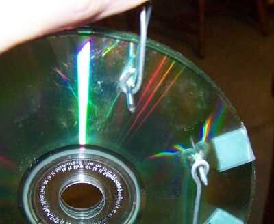 Hacer bucles en los extremos de los cables que soportan la pinza como hizo con la manija. Acople los lazos al otro eje. Asegúrese de que los cables no rocen con el CD, pero se pueden mover libremente.