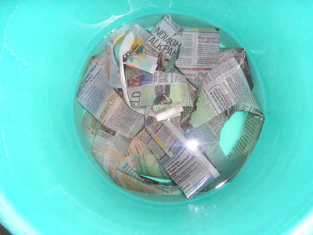 Paso 3: Remoje las tiras de periódico.