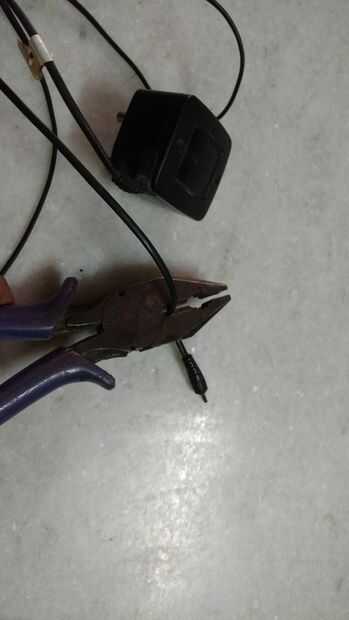 3. (opcional) cortar un cargador y tira sus 2 cables y conectarlos a los dos clavos