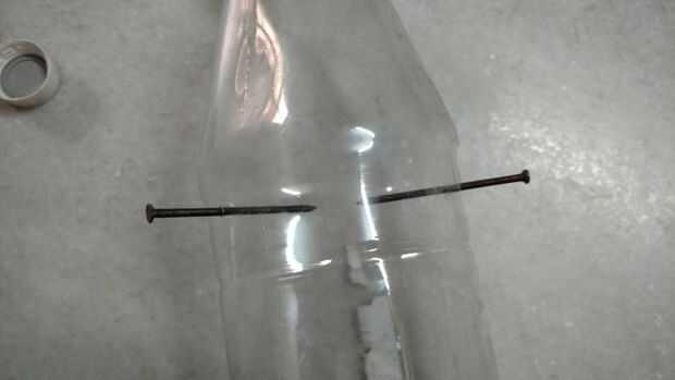 1. una botella de coca cola 2 L y 2 agujeros en él