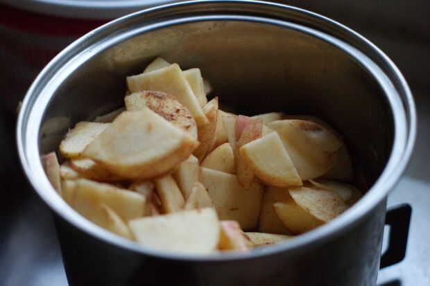 1. Coloque todas las manzanas en rodajas en una olla grande.