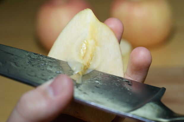 1. Tome tres manzanas y cortarlas en cuartos.