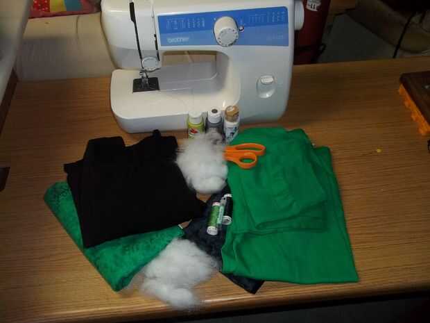 Se necesita: Tijeras Máquina de coser Tela negra Aguja Hilo (negro) Máquina de coser Sudadera verde Tiza Maquillaje de Halloween Un espejo Un pedazo de cartón Relleno Elástico