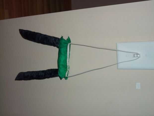 Aquí es donde el elástico en ella, simplemente la puntada (ADVERTENCIA: esta parte tendrás que usar el coser a mano) el elástico en la parte inferior de su base (muy bien, puedo tomo nota). Coser se juntas los dos extremos sueltos (si no quieres unirlas y luego simplemente atarlos). Los dos (previamente) cabos sueltos se van debajo de la barbilla y la base y las orejas se sentarán encima de tu cabeza!