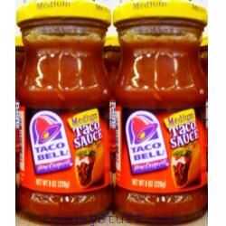 Para la salsa de taco, Salsa de taco Taco Bell funciona bien; Generalmente Compro el medio pero suave trabajado demasiado. Caliente puede ser un poco demasiado overkill, pero seguir adelante y probar si quieres. También puede utilizar paquetes queda de último ejecutar la articulación local de taco, si quieres.
