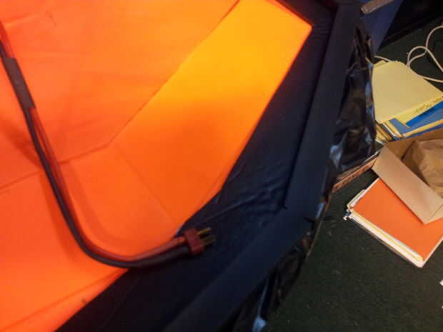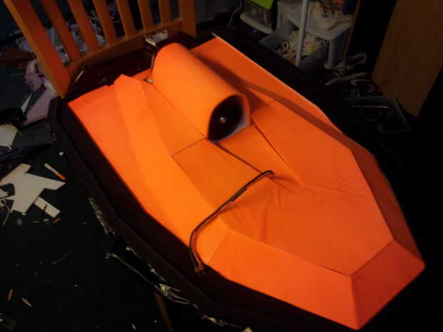 Uso de Dollar Tree tablero construí una pieza para cubrir la falda para hacer más ordenado el aerodeslizador de la espuma. Utilizando espuma de goma con un lado adhesivo alinea el borde del aerodeslizador para hacer un tope para proteger el cuerpo.