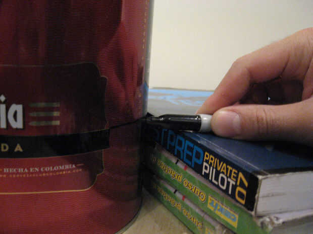 Es casi seguro que tendrá que recortar el exceso de material. Trazar una circunferencia perfecta, que he utilizado un rotulador fijado sobre una superficie estable. Una o dos revoluciones de la can dio lugar a una circunferencia perfecta.