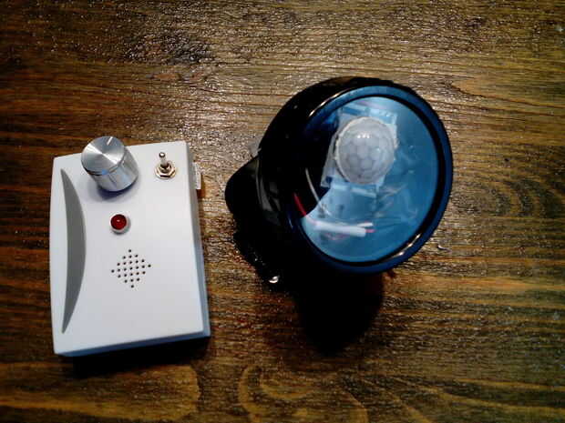 Usted puede dejar el transmisor en cualquier lugar y enviará una señal de radio al receptor de bolsillo, una vez que un zombie es detectado por el sensor de infrarrojos.