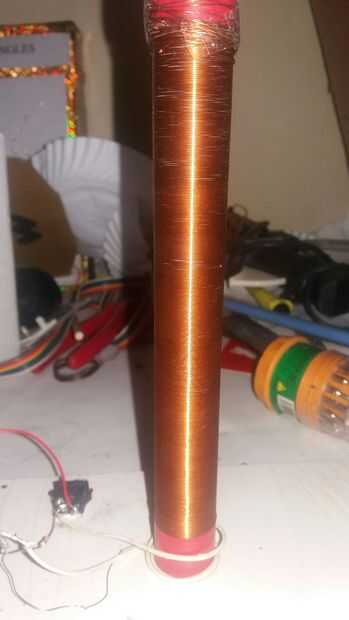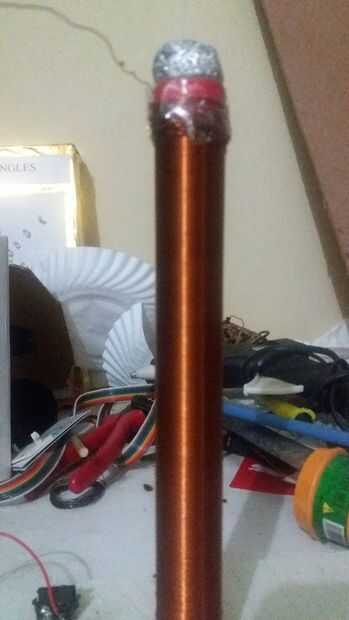 tomar el tubo de pcb aproximado 10 a 15 cm de altura ahora ronda el alambre de cobre en ella y empezar a enrollar ambos extremos con cinta adhesiva para no desenrollar por sí mismo. Ahora tienes una bobina con dos extremos