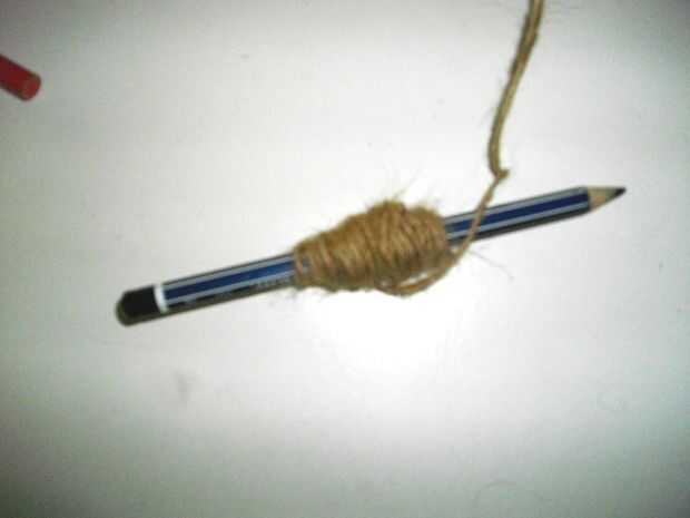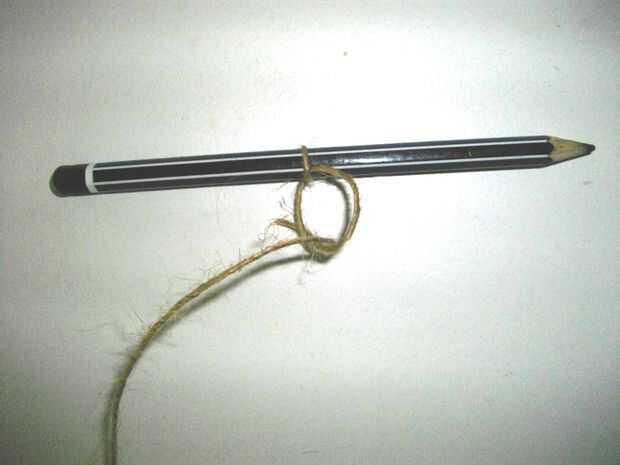 Opcional - si usa cadena floja, puede quieres atarla a un lápiz, pluma, palillo o similar objeto forma y viento él alrededor para facilidad de manejo. Si utiliza un carrete de algodón, que te gustaría un bolígrafo o un lápiz a través del barril, que permitirá que el hilo de desenrollar libremente del hilo de rosca.