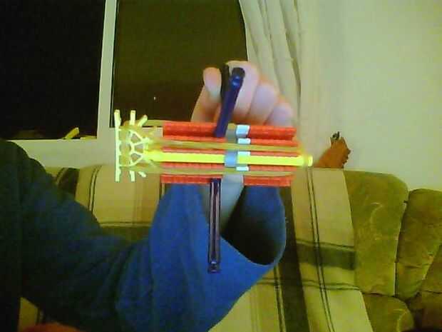 Ametralladora de goma muy Simple-(VER VIDEO)-Se necesita:-un palito de Jumbo-un pequeño archivo-algunas bandas de telarHoy voy a mostrar cómo hacer una muy Simple goma ametralladora con un palito de Jumbo y un pequeño archivo. Usted también necesitar