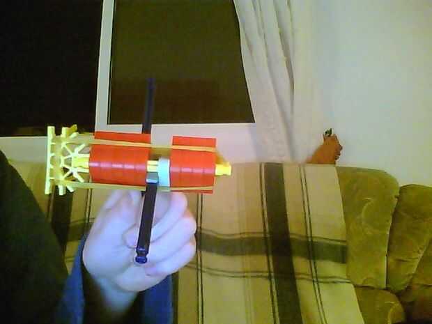 una muy fácil de construir K'NEX arma utilizando sólo piezas básicas y cortarla sorprendentemente fuerte y extremadamente potente. Esto puede ser un juguete pero es mucho más poderoso que su pistola de media así que ten cuidado con él.Tiempo: aproxim