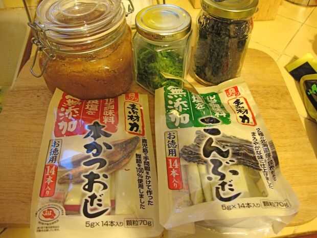 Sin embargo, puede ser difícil encontrar los ingredientes para "dashi" en sus supermercados. Así que probablemente terminas yendo a un mercado Japon o asiático de todos modos... Cualquier asiático tiendas y tiendas de productos naturales llevan ingredientes de dashi como copos de bonito y kombu (quelpo). Pero tienes que ir a una tienda japonesa o asiática a encontrar dashi en polvo de uno o dos o 10 marcas diferentes.
