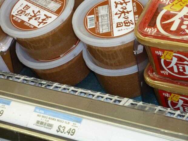 Miso es un condimento de milagro (al menos para mí) que hace un montón de cosa más deliciosas gracias a los aminoácidos orgánicos cargados y cultura viva y más! Creo que usted puede comprar miso de supermercados en los Estados ahora. ¿Verdad? También hay misos que ya se mezclan con dashi. Pero estos misos generalmente contiene MSG... para que sepas. Me gusta miso orgánico sin pasteurizar. Es como $4 por libra.