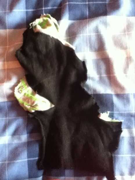 Agarrar tu calcetín y cortar verticalmente con un par de tijeras por lo que parece que esto (might).