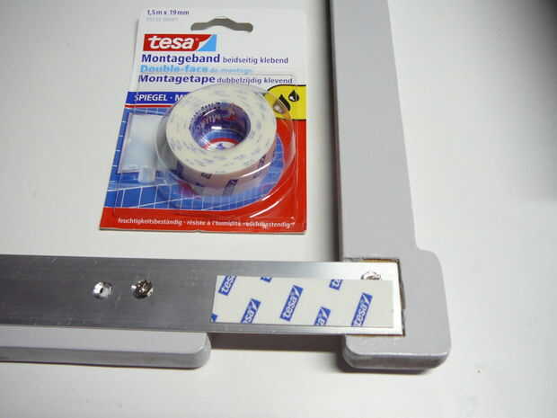 El frente se celebra arriba con cinta de espejo muy fuerte, sencilla pero efectiva. (y no daña la pantalla). Para el pie he utilizado especiales palo rasguñar-libre-pies para un soporte firme y constante. Por supuesto si haces tu propio stand puede Agregar cosas o decoración en cualquier forma.