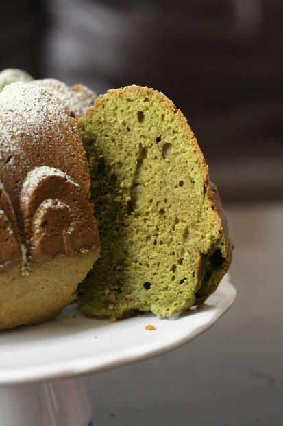 No dude en cortar en el pastel y disfrutar de ese intenso color y sabor del té verde hermoso.