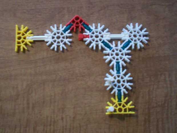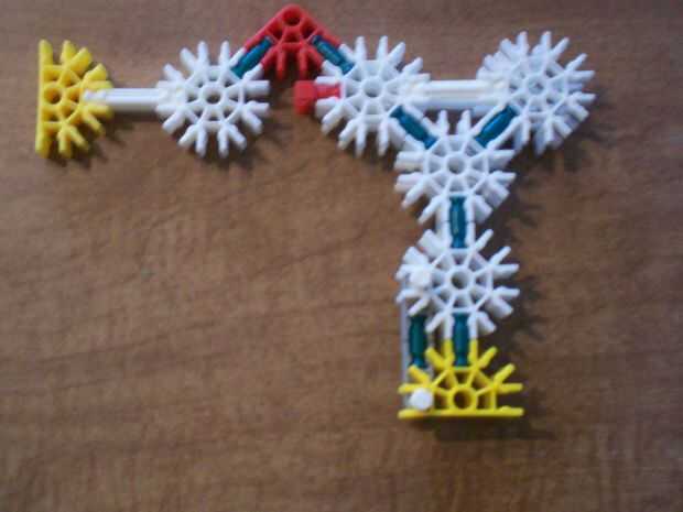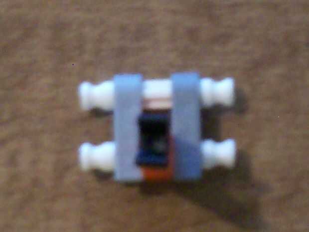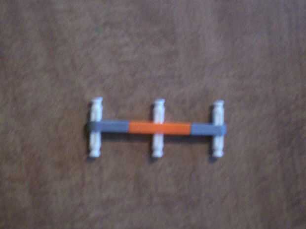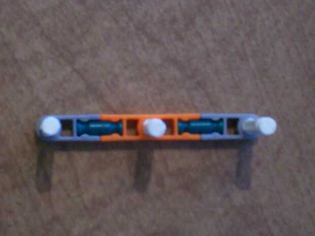 14. Tome una barra azul, fije un conector gris y de un espaciador azul. Hacer 3 de estos.