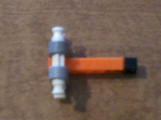 13. Acople un conector naranja a la barra blanca por encima y detrás del mango.