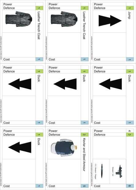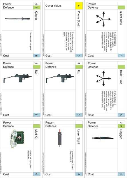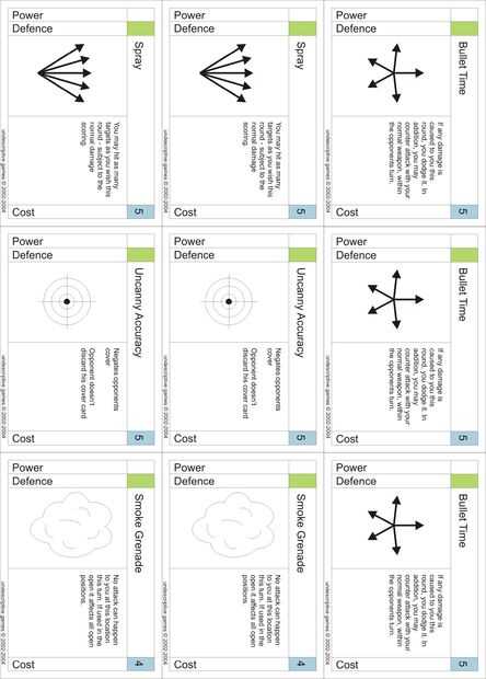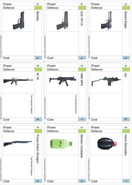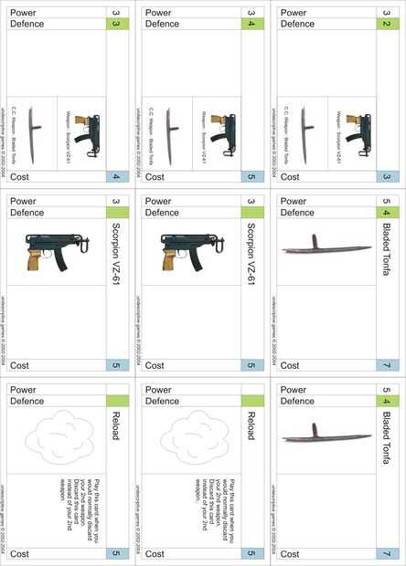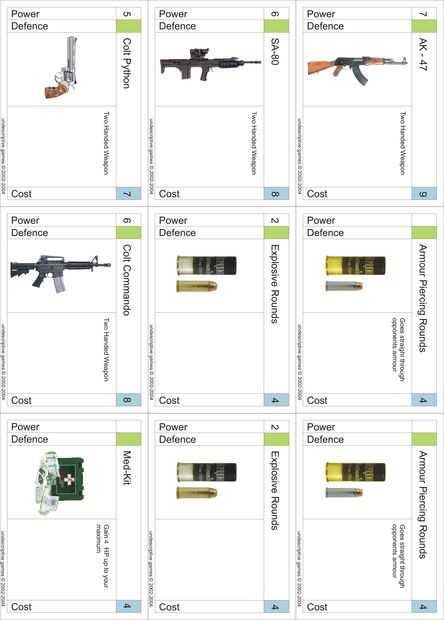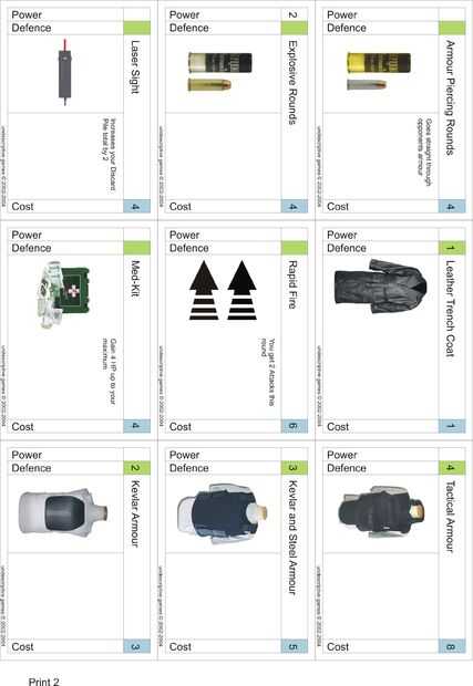 Las tarjetas son de tamaño para imprimir en A4 y en letra tamaño tarjeta. Si tienes problemas con conseguir el "tipo correcto" de la tarjeta, impresión sobre papel y pega a un barato baraja de cartas.