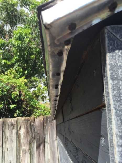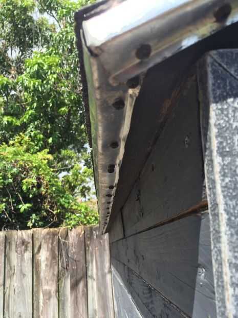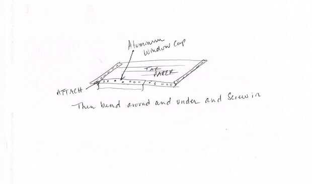 Tomé el alquitrán restos de papel que nos dieron desde el trabajo de techos nuevos vecinos... a partir del borde inferior de los paneles del techo y luego trabajo su camino hasta superpuestas ligeramente... Entonces tomé el aluminio tapones de ventana que tenían una curva y funcionaron a lo largo y enclavado en el borde va todo el camino alrededor.